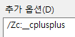 그런데 기본 설정으로는 __cplusplus가 C++98로 고정되니, C++의 명령줄 옵션에 /Zc:__cplusplus를 추가해줘야 됩니다.