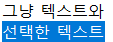 선택한 텍스트 영역은 주로 파란 배경에 흰색 텍스트로 표시됩니다.